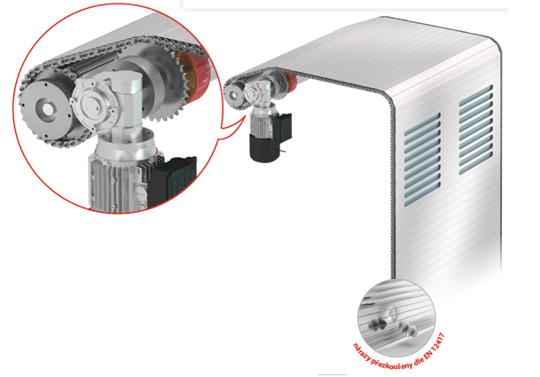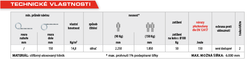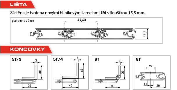 Zástěna je navíjena na mechanismus P.E.I. a díky motoru a integrovanému řetězu upevněnému na zástěnu se odvíjí. Zástěna je tvořena novými hliníkovými lamelami JM s tloušťkou 15,5 mm.