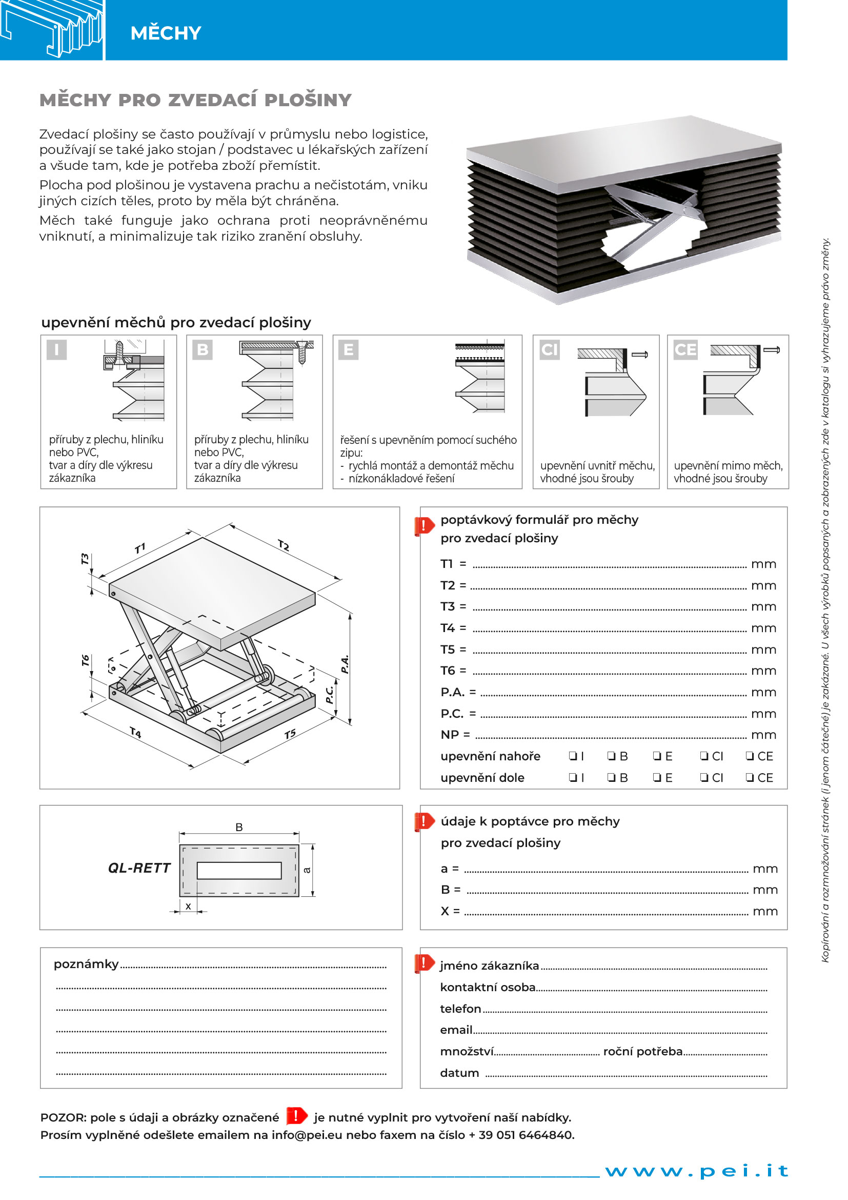 Standardní upevňovací systém pro tepelně svařované měchy pro zvedací plošiny