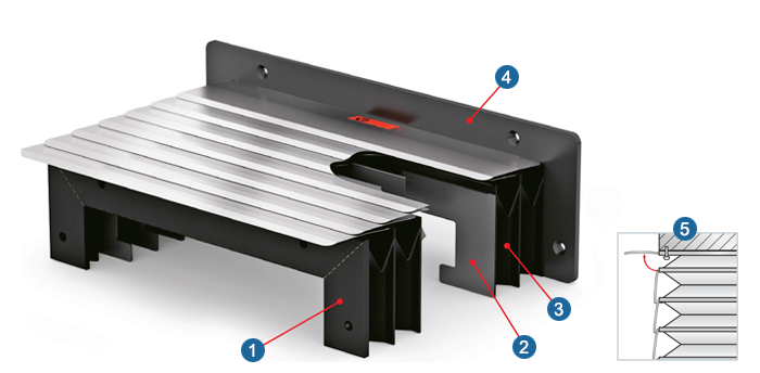 5) možné speciální upevnění první ocelové lamely usnadňující montáž