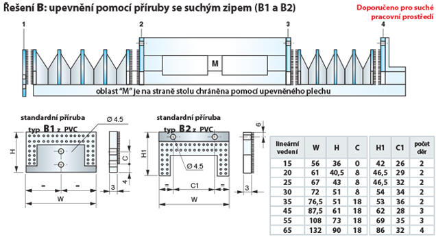 Tento katalogový list ukazuje standardní řešení upevnění měchu pro lineární vedení.