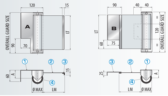 ROZMĚRY v mm / CELKOVÁ ŠÍŘKA = LT + 30 / DODÁVKY ZE SKLADU