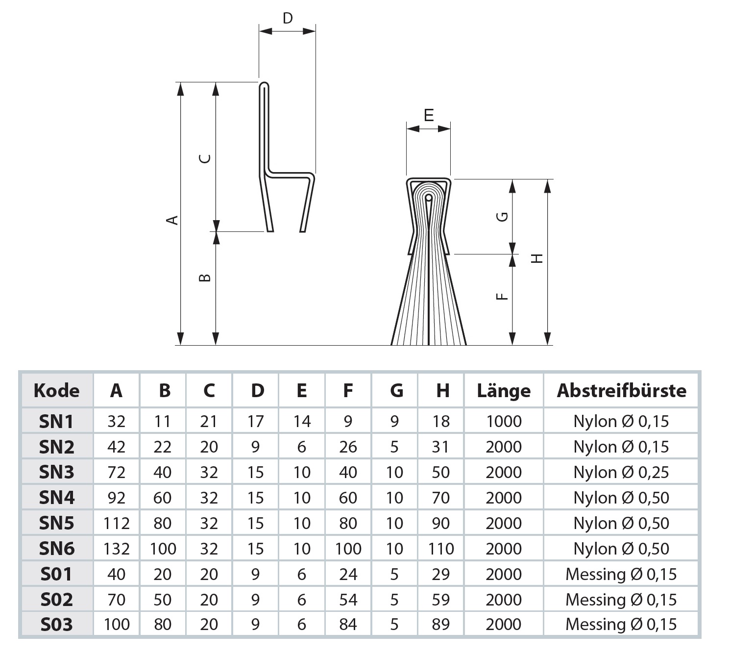 ABSTREIFBÜRSTEN MIT BEFESTIGUNGSRAHMEN