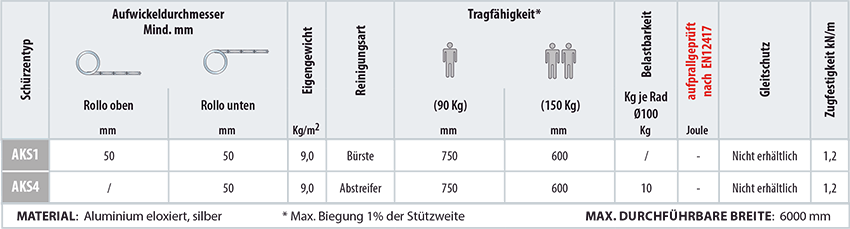 Profilarten und Abmessungen der AKS Schürzen