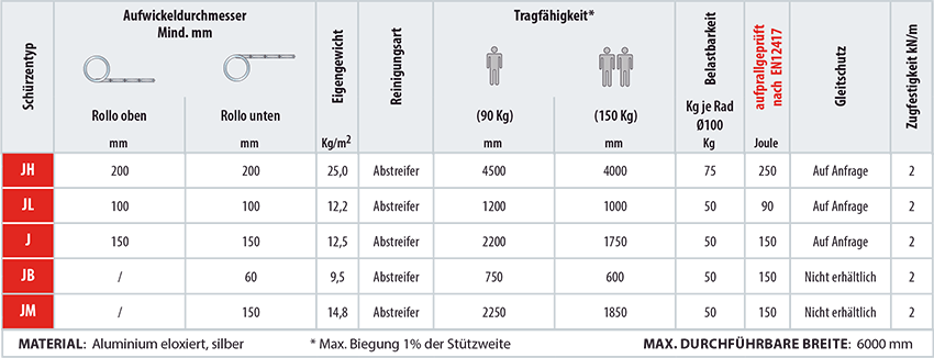 Alle SCHÜRZEN der “J”- SERIE sind AUFPRALLGEPRÜFT nach der Norm ISO 16090-1:2017.