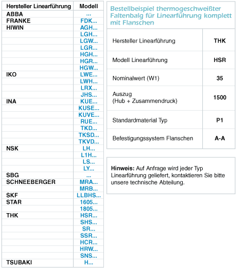 | PVC 15 | PVC | 1,50 | Balgbreite (B) von 701 bis 1500 mm |