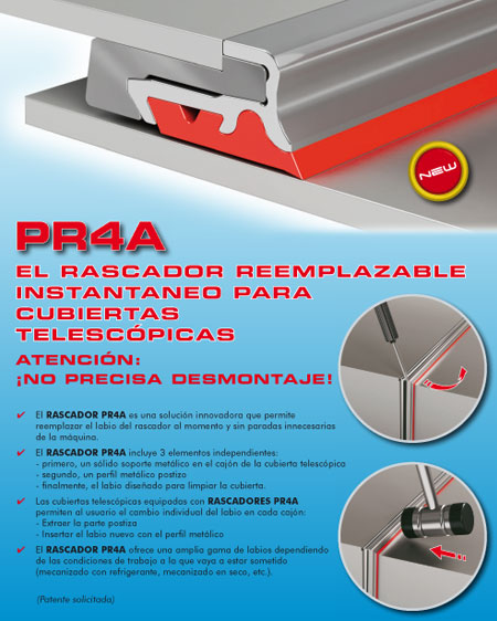 ✔ El rascador PR4A es una solución innovadora que permite reemplazar el labio del rascador al momento y sin paradas innecesarias de la máquina.