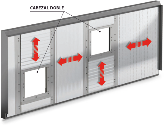 • SCUDO X-Y se compone de 4 o más fuelles termosoldados montados en una estructura soporte que permite moverse libremente al cabezal. Esta solución combina facilidad de montaje/mantenimiento, ahorro de costes y robustez.