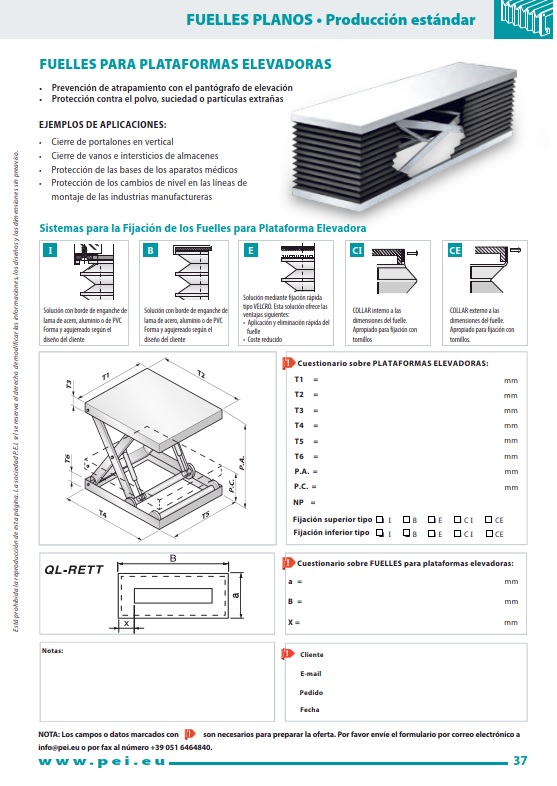 Fuelle para mesas elevadoras: se suministran desmontados para facilitar así el montaje directamente en el destino.