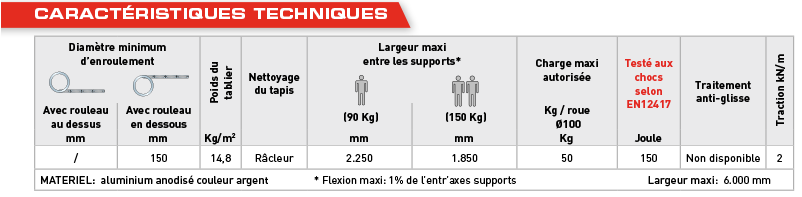 • Adapté aux surfaces piétonnables, avec caractéristiques supérieures au tapis Serie “J”.