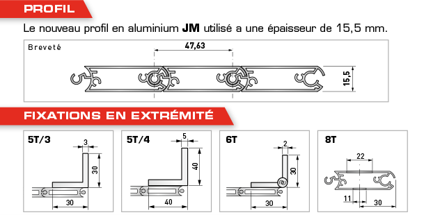 Le nouveau profil en aluminium JM utilisé a une épaisseur de 15,5 mm.