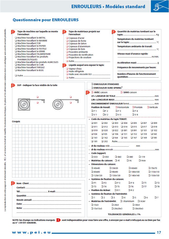 Remplissez le questionnaire avec les caractéristiques de votre protection