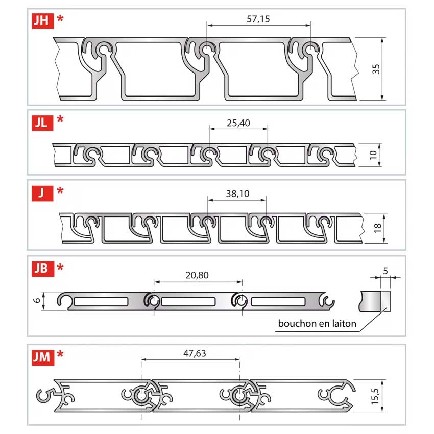 Géométries du profil en aluminium disponibles pour les tabliers type J