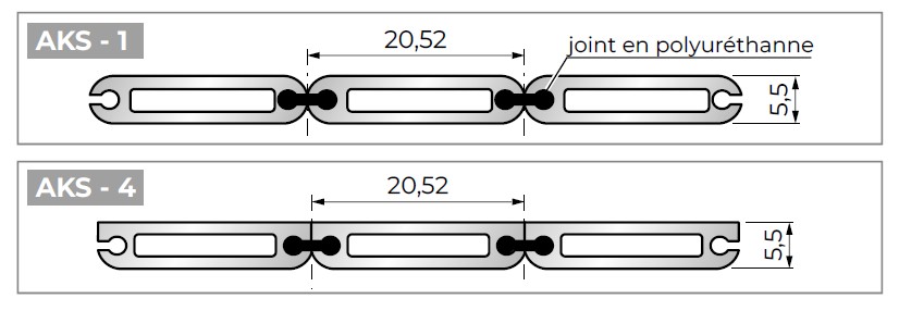 Enrouleurs avec tabliers: Géometries des extrémités pour profiles en aluminium type AKS.