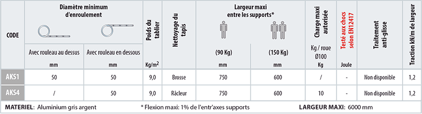 Code d’extrémité | L1xL2xS | BxH | C | D | E | Matériel | Description | Code Tapis |