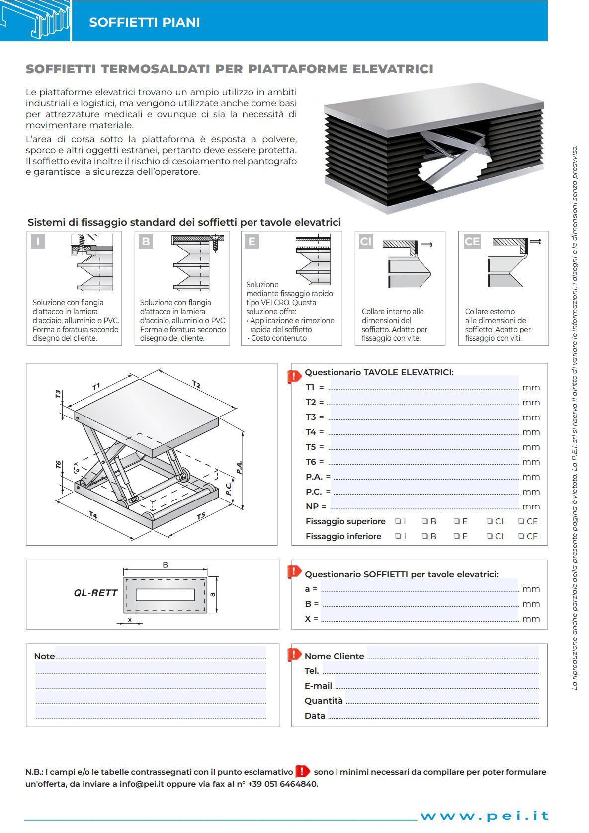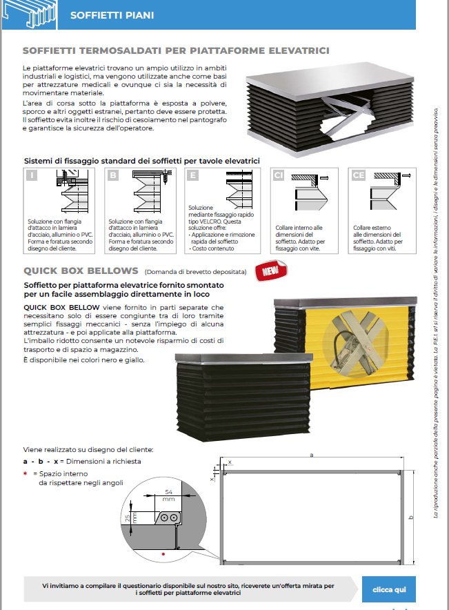 Sistema di fissaggio standard dei soffietti termosaldati per piattaforme elevatrici
