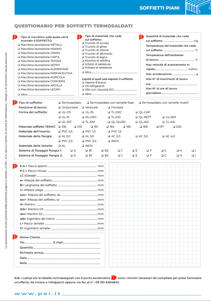 ** NON consigliato per soffietti termosaldati con lamelle.