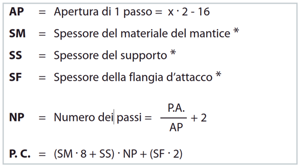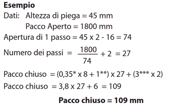Formula indicativa per il calcolo del pacco chiuso dei soffietti piani termosaldati con lamelle fisse