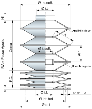 Sono disponibili con boccole di guida ed anelli di rinforzo. I soffietti circolari cuciti sono la soluzione ideale per chi cerca una protezione ottimale con un buon rapporto qualità/prezzo.