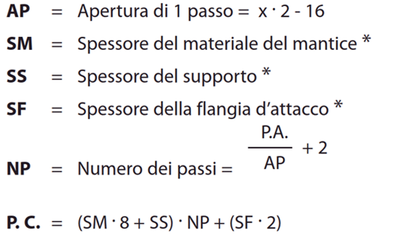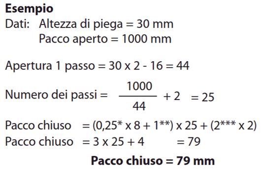 Formula indicativa per il calcolo del pacco chiuso dei soffietti piani termosaldati con lamelle mobili