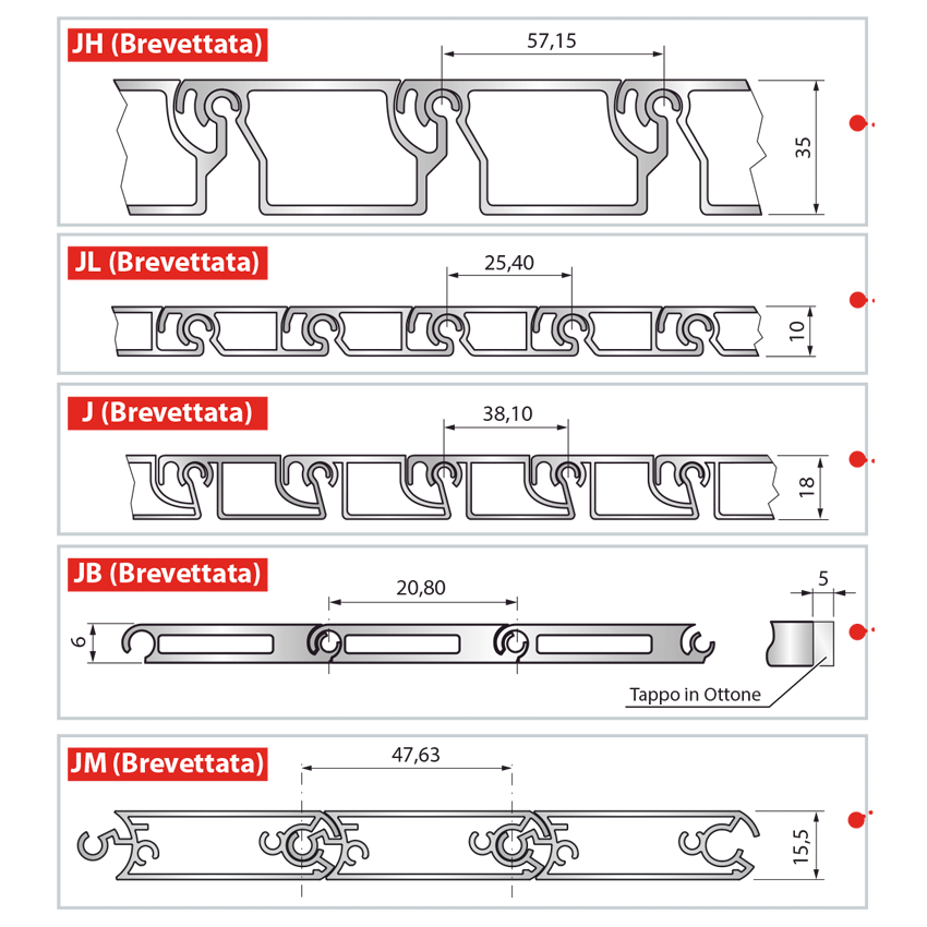 Caratteristiche tecniche dei profili in Alluminio tipo J
