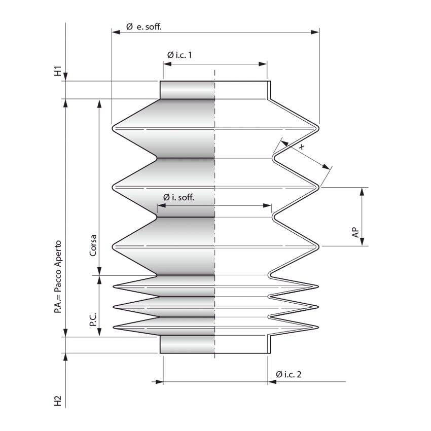 Ø dış (OD) = Dairesel körüğün dış çapı