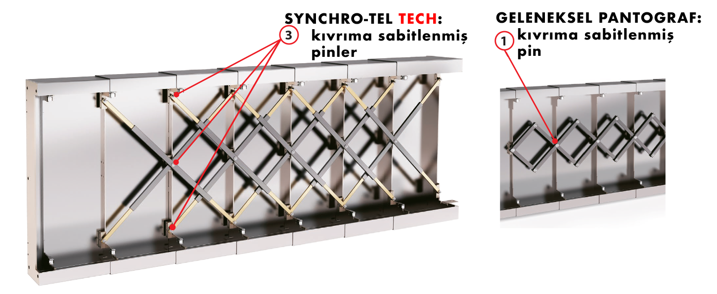 ÖZEL MEKANİK MAKAS SİSTEMİ TELESKOPİK KAPAKLARDA SENKRONİZE HAREKETİ SAĞLAR