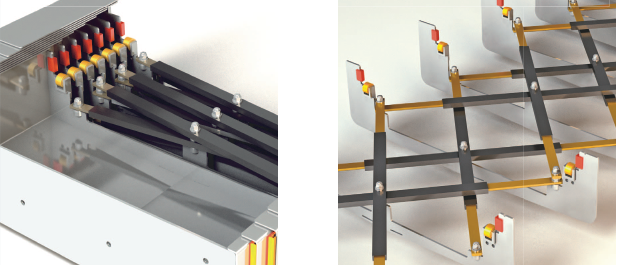 Hiçbir pin serbest değildir, her biri çubuklar yalpalamadan kıvrımlara sabitlenmiştir.